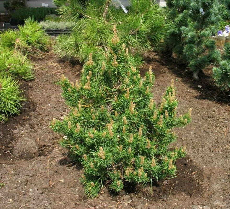 Уникальный, очень оригинальный раскидистый сорт сосны Банкса. Растет в меру крепким, его годовые приросты составляют 10-15 см. Его побеги растут горизонтально в стороны, плавно поднимаясь вверх. Если не использовать опору, то получим достаточно плоскую восходящую форму. Имеет типичную для вида хвою, светло-зеленую в свежем приросте, позднее темнеющую.