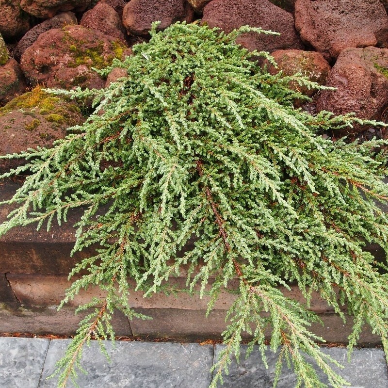 Невысокий сорт с раскидистыми побегами, покрытыми игольчатой сине-зеленой хвоей. В сентябре на взрослом растении появляются черно-коричневые небольшие декоративные шишечки. Купить саженцы можжевельника обыкновенного Ристол стоит для украшения рокария, верескового сада, альпинария, каменистой горки, подпорной стенки, берега водоема, сорт отлично смотрится как в одиночной посадке на фоне газона, так и в составе пейзажной композиции с другими хвойниками, декоративными кустарниками, многолетними цветами и злаками. Растение морозостойко, устойчиво к заболеваниям и атакам насекомых-вредителей, нетребовательно в уходе. Для посадки подойдет солнечный участок с питательной дренированной почвой. Уход за можжевельником Ristol сводится к поливу и связывания побегов на зиму, необходимого, чтобы уберечь их от повреждений, вызванных налипанием снега.