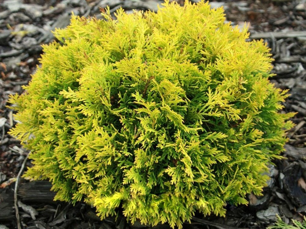 Туя западная "David" — это очаровательный хвойный кустарник, который обладает плотной шарообразной кроной. Его иголки имеют мягкую чешуйчатую структуру и изумрудно-зеленый цвет весной и летом, а осенью и зимой приобретают бурый оттенок. Побеги туи густо ветвятся, что придает растению красивую форму и позволяет ему равномерно расти в разные стороны. Несмотря на свою медлительность, средний годовой прирост составляет 5-7 см. Высота взрослых экземпляров – до 60 см, ширина кроны – до 80 см. Это хвойное растение предпочитает солнечные участки, но может адаптироваться и к полутени, и даже к тени. Однако в последнем случае оно может потерять свою декоративность, становясь рыхлым и бледным. Туя западная нуждается в хорошо дренированных, умеренно увлажненных почвах, богатых питательными веществами. Она не переносит чрезмерное уплотнение грунта и продолжительную засуху.