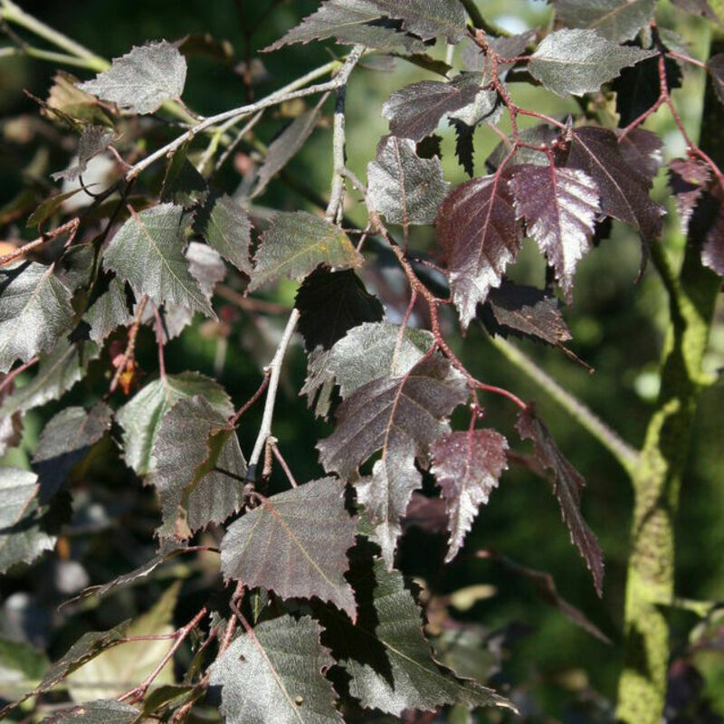 Медленнорастущее дерево высотой до 10 м с бордовыми листьями, свисающими побегами и довольно рыхлой пирамидальной кроной. Бордово-пурпурный цвет листьев особенно проявляется ранним летом. Растение выглядит необычно из-за контраста белого ствола и темного цвета листьев. У молодых растений-кора бронзовая. Осенью листья -оранжево-красные. Темп роста средний. Зимостойкость средняя.