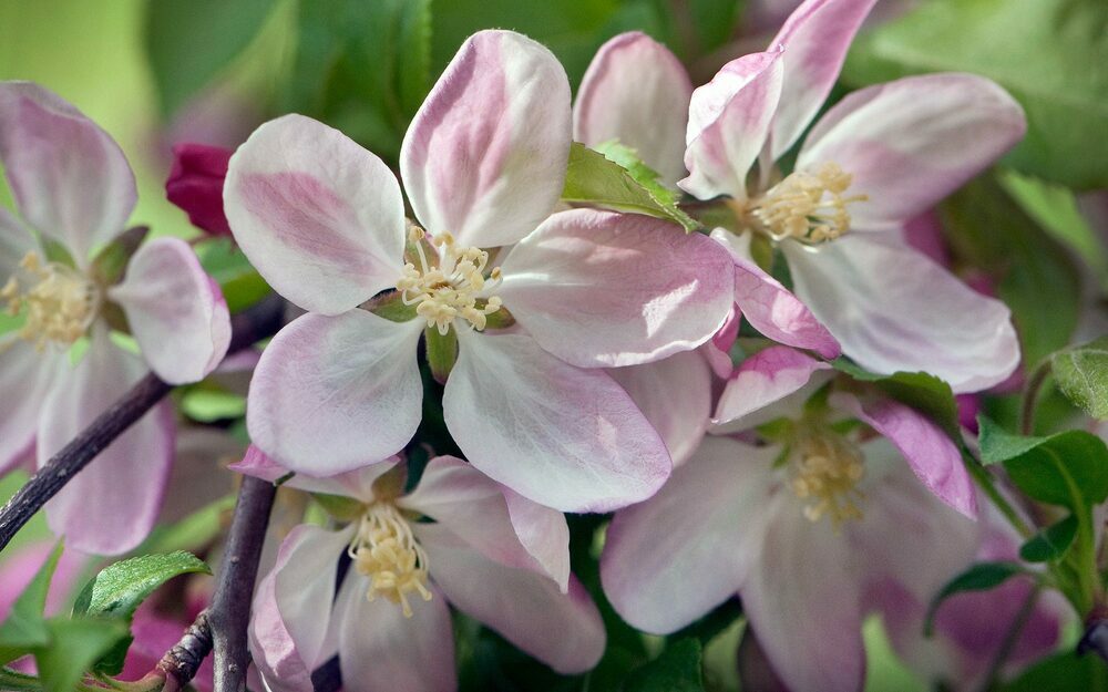 Яблоня декоративная сорта Лаура отличается компактными размерами и необычайно красивым цветением.