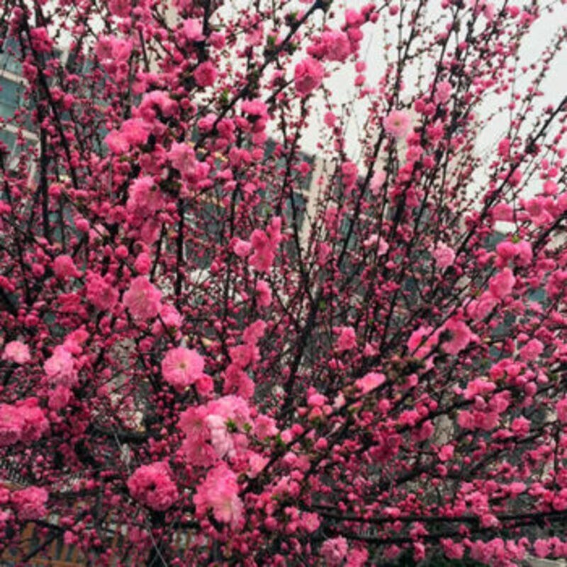 Миндаль декоративный Розовый шар (лат. Prunus glandulosa 'Rosea') - это небольшой кустарник из семейства розовых. Он часто используется для городского озеленения благодаря своей красивой форме и яркому цветению.
