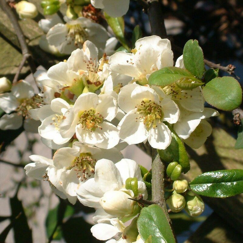 Широкий безколючковый кустарник с частично стелющимися побегами, высотой до 1 м. Листья зеленые, блестящие. Цветы белые, медоносные, обильные, в пучках по 2-6, чашевидные 3-5 см в диаметре, цветет в апреле - мае. Плоды съедобные, зеленые, по мере созревания желтеют. Прекрасно растет на любой почве. Переносит умеренную обрезку. Подходит для посадки на альпийских горках и склонах.
