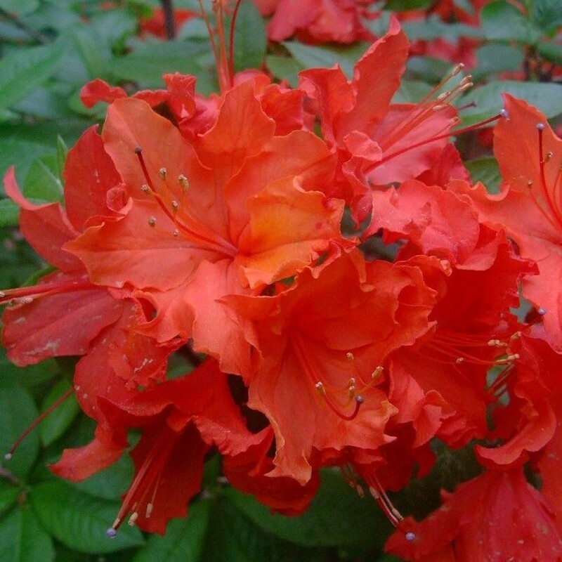 Азалия гибридная "Hotspur Red" (Хотспур Ред), порадует вас своим цветением. Соцветия расположены на концах ветвей, несут 6—12 простых цветков, цветки распускаются до листьев или одновременно с ними. Сроки цветения - май-июнь. У сорта "Hotspur Red" цветки крупные, красно-оранжевые. Для полноценного закладывания цветочных почек на следующий год, необходимо удаление всех увядших соцветий.
