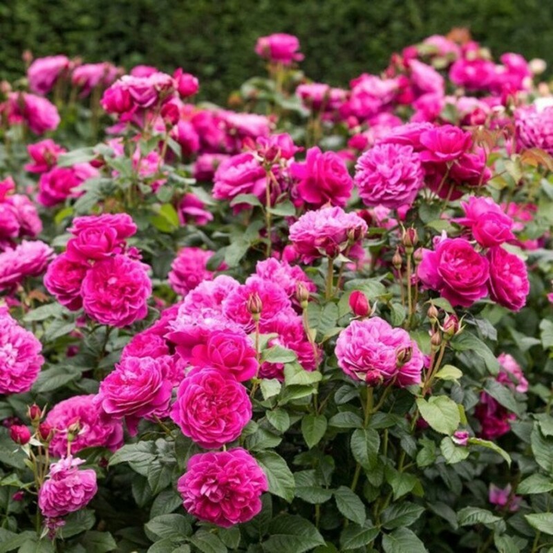 Роза Джеймс Л, Остин, Д.Остин кустарниковая - Вишнево-розовая окраска цветка сразу привлекает внимание. Сами цветки собраны в кисти по 3-5 шт. Когда они полностью открыты, то видна золотистая серединка из тычинок. Форма – розетка. Внешние лепестки большие, центр же формируют лепестки поменьше. На ярком и длительном солнечном свету окраска выгорает до светло-розового. Сорт толерантен к дождям, однако в сырости и холоде может терять свою привлекательность. Бутон – округлый с острой верхушкой, плотный. Аромат ягодный: черная смородина, ежевика, малина и вишня с примесью цедры лимона и миндаля. Он приятен и легкий для восприятия.
