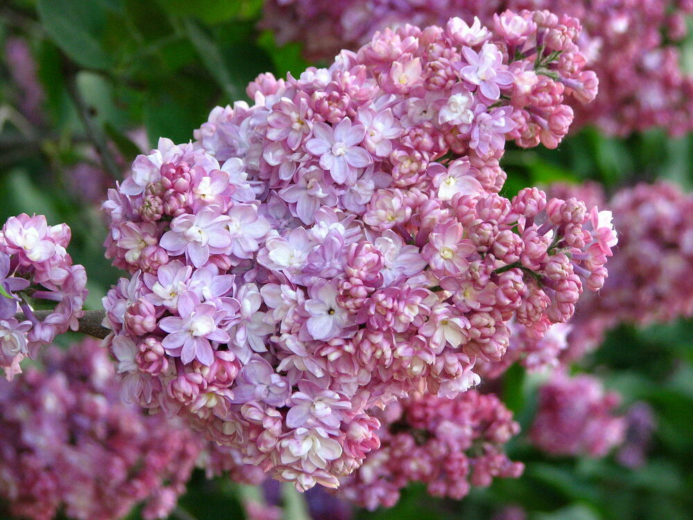 Цветение: обильное, насчитывает до 40 цветущих соцветий. Цветы сирени память о Вехове имеют крупные цветки (до 3 см в диаметре) яркого лавандово-розового цвета.
