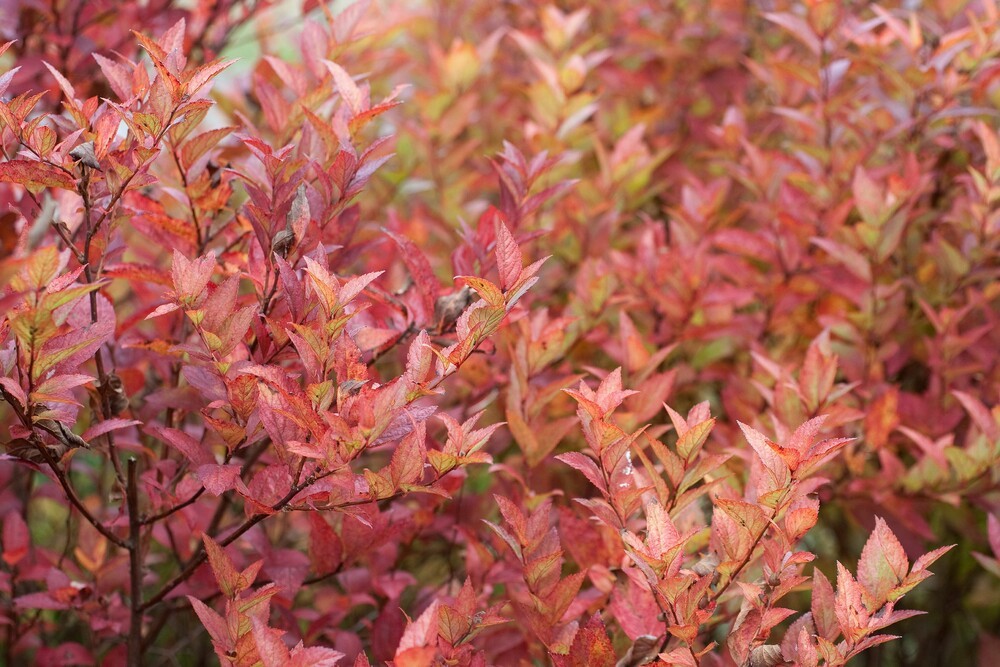 Листья весной оранжево-красные, к лету приобретают сложный желто-зеленый оттенок, при посадке в тени – просто зеленеют и становятся тривиального бутылочного цвета. К осени они возвращаются к оранжево-красной гамме.